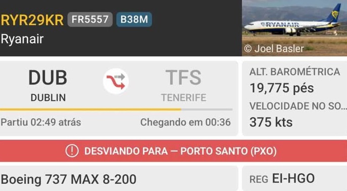 Um avião da Ryanair que seguia de Dublin para Tenerife teve esta manhã de ser desviado para o Porto Santo devido a uma emergência médica a bordo.