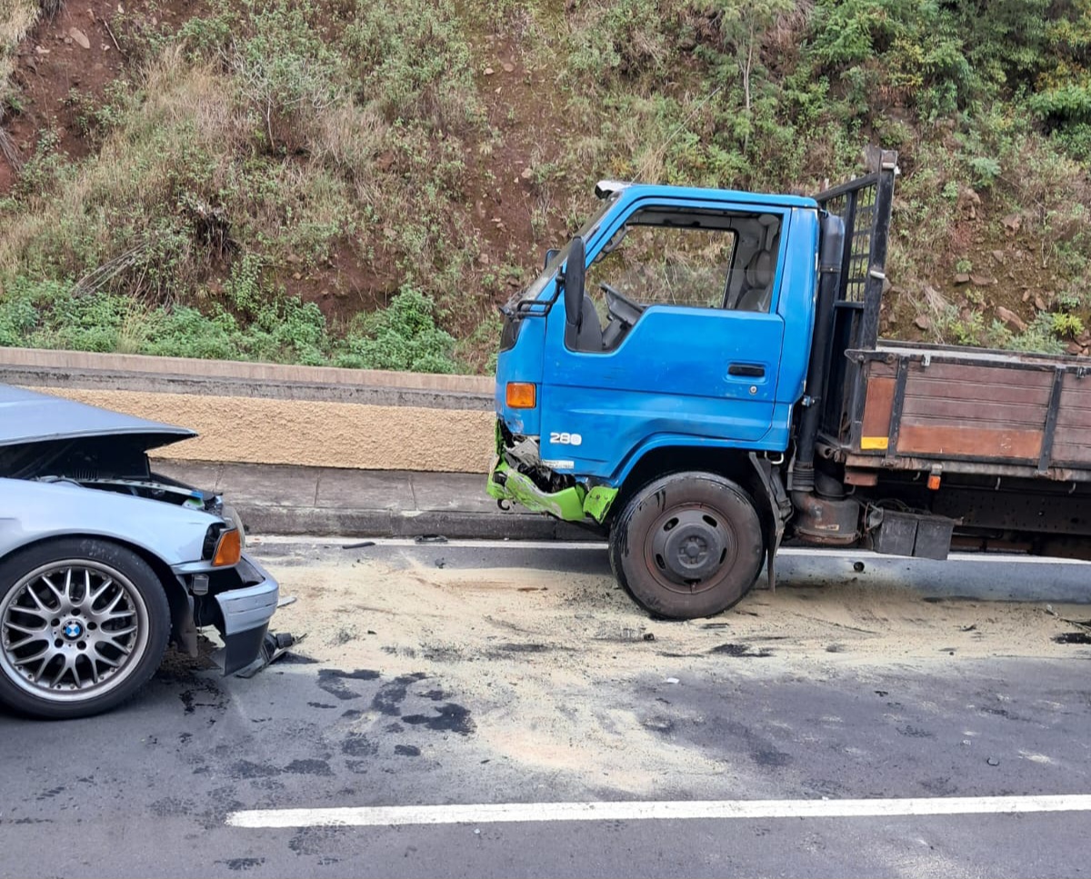Os Bombeiros Voluntários Madeirenses foram mobilizados há pouco para um choque frontal entre um carro ligeiro e uma carrinha de caixa aberta na Estrada da Fundoa, no Funchal.