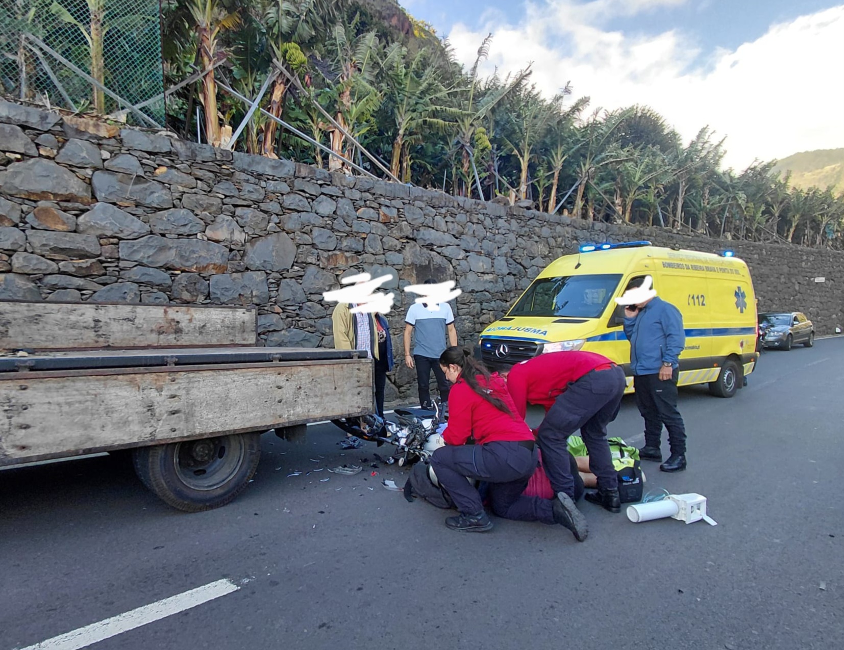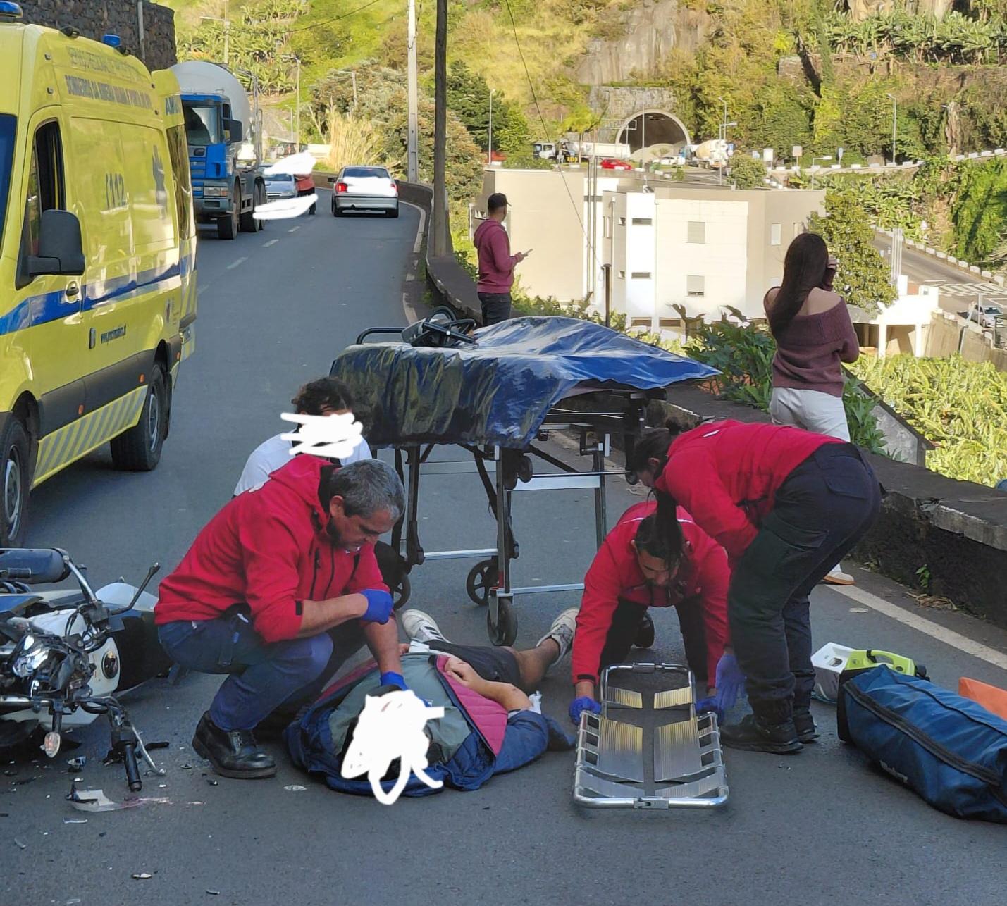 Um jovem motociclista com 17 anos acaba de chocar contra uma carrinha de caixa aberta que estava estacionada na faixa de rodagem.