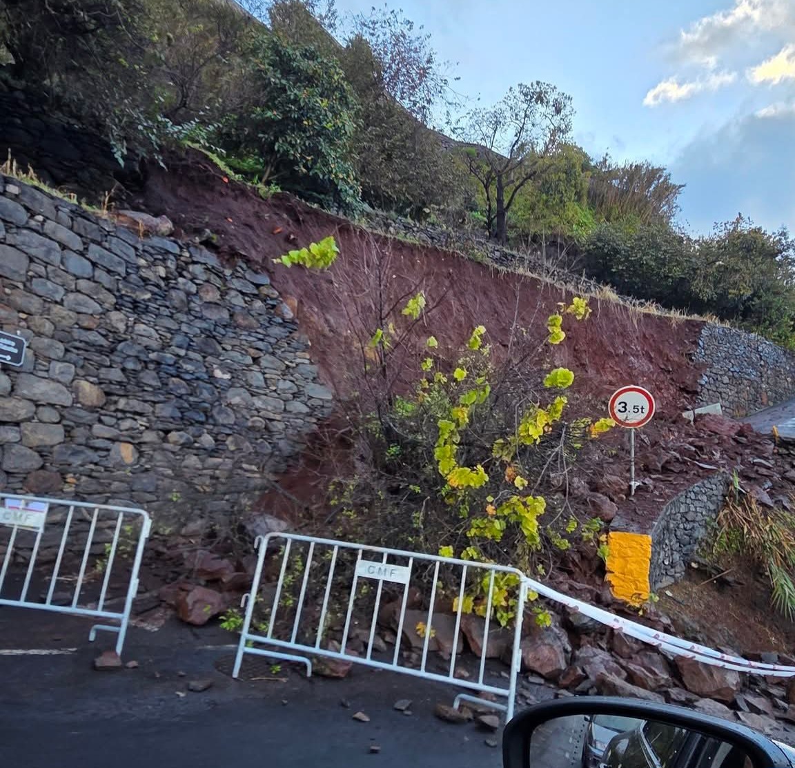 Tratou-se novamente do desabamento de um muro que provocou um deslizamento de terras que voltou a fechar a estrada.