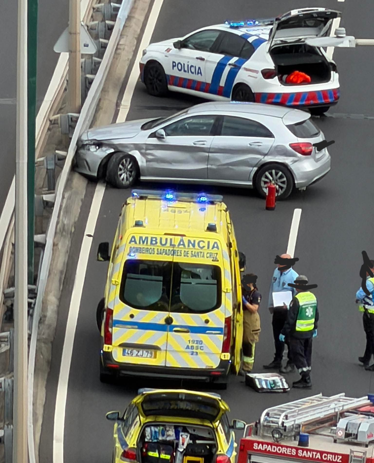 Para o local foram mobilizados os Bombeiros Sapadores de Santa Cruz, a EMIR, a PSP e a Vialitoral.