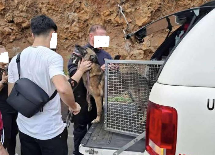 Estava num local de difícil acesso, junto a algumas árvores, e foi encontrado pela equipa cinotécnica da PSP juntamente com meios da Proteção Civil Municipal