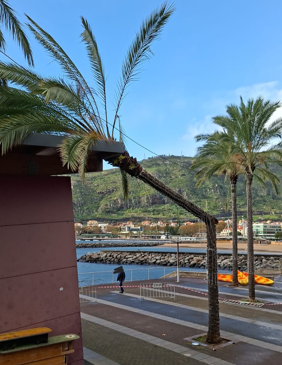 No Caniçal, a queda da vedação da Zona Franca levou ao fecho da estrada de acesso ao cemitério e em Machico, no porto de recreio, uma palmeira partiu a meio e ficou tombada no telhado do edifício, na sede do Ludens Clube de Machico.
